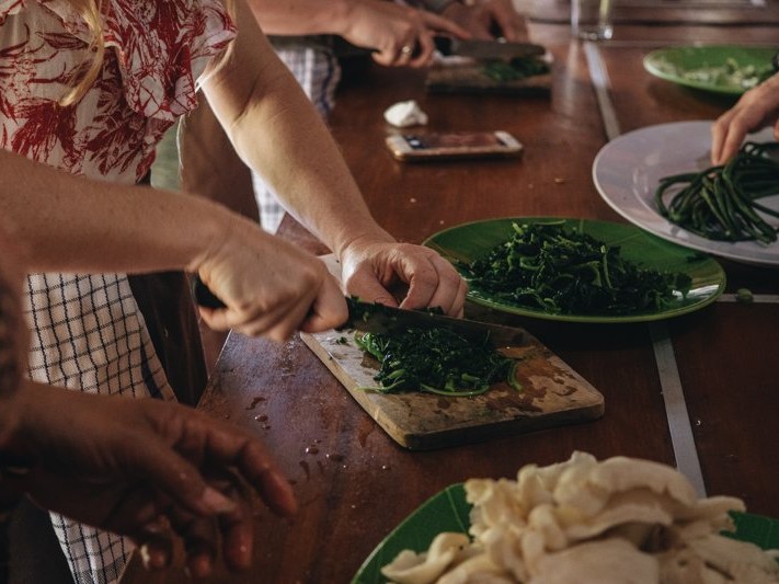 - Pertama Anda akan diajak ke Ubud dimana Anda akan belajar masakan khas Bali yang terkenal sedikit pedas dan pastinya enak. Paket Cooking class di Ubud ini akan membawa Anda belajar memasak dimulai dari membeli bahan-bahan di pasar tradisional, menyiapkan bahan, mengolah bahan makanan dan bumbu rahasia serta menikmati hasil dari masakan Anda sendiri di rumah tradisional Bali.